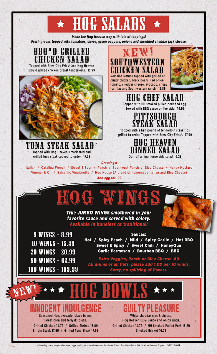 Topped with jalapeños and your choice of Hog Heaven wing sauce.